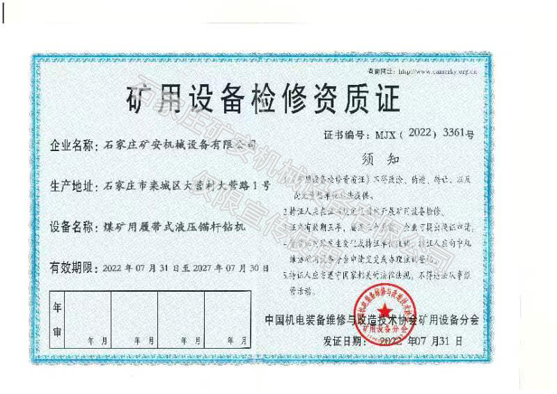 石家莊礦安機(jī)械設(shè)備有限公司成立于2011年3月,公司位于風(fēng)景優(yōu)美、科技發(fā)達(dá)、交通便利的石家莊市欒城區(qū),是一家專(zhuān)注生產(chǎn)煤礦井下支護(hù)機(jī)具(錨桿鉆機(jī))和安全鉆機(jī)(防突,架柱等)及氣動(dòng)隔膜泵等礦用機(jī)械設(shè)備的********,是國(guó)內(nèi)煤礦機(jī)械裝備的生產(chǎn)商和服務(wù)商,根據(jù)用戶需求提供井下適用的鉆機(jī)施工解決方案。公司致力于打造研發(fā)、制造、銷(xiāo)售、服務(wù)為一體的現(xiàn)代化企業(yè),全心全意為煤礦生產(chǎn)保駕護(hù)航。 ? 公司建有裝配車(chē)間、機(jī)加車(chē)間和調(diào)試車(chē)間,擁有嚴(yán)格的質(zhì)量控制體系、先進(jìn)的產(chǎn)品開(kāi)發(fā)系統(tǒng)、完善的試驗(yàn)檢測(cè)設(shè)施、良好的售后服務(wù)保障。先后與中煤科工集團(tuán)沈陽(yáng)研究院、西安研究院、太原理工大學(xué)、燕山大學(xué)等知名院校建立了緊密的合作關(guān)系。 ? 公司產(chǎn)品主要銷(xiāo)往山西、陜西、山東、內(nèi)蒙古、黑龍江、云南、貴州等七十多個(gè)礦區(qū)和地方煤礦,擁有一支成熟的售后技術(shù)團(tuán)隊(duì),并且和中煤集團(tuán)、華電煤業(yè)集團(tuán)、華潤(rùn)煤業(yè)集團(tuán)、潞安集團(tuán)、山西焦煤、淮北礦業(yè)等國(guó)內(nèi)知名企業(yè)達(dá)成長(zhǎng)期合作關(guān)系。 ? 公司始終秉持“讓煤礦生產(chǎn)更安全”的發(fā)展使命,力求誠(chéng)信與創(chuàng)新,追求卓越與完美,深知“實(shí)實(shí)在在、心無(wú)旁騖做實(shí)業(yè)”,這才是本分!石家莊礦安機(jī)械設(shè)備有限公司愿與您攜手共進(jìn),共同發(fā)展!為客戶創(chuàng)造價(jià)值,提供優(yōu)質(zhì)的產(chǎn)品和*佳的服務(wù)是我們永無(wú)止境的理念!